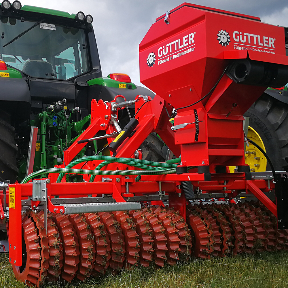 A GreenMasterrel egy menetben elvégezhető a felülvetés is, pontos vetőmag-kijuttatással és egyenletes keléssel, legyen szó gyepfelújításról, zöldtrágya-növények vetéséről vagy akár lucernatelepítésről. A beépített Güttler henger kialakítja az ideális magágyszerkezetet a gyorsabb kelés érdekében, miközben visszaszorítja a nem kívánatos gyepalkotó fajokat is. Kukoricatarlón a szárak törésével segíti a kártevők elleni vegyszermentes védekezést, a zöldtrágya vetésével pedig javítja a talajállapotot, csökkenti a műtrágyaigényt és hozzájárul a fenntartható gazdálkodáshoz — valódi értéket teremtve minden hektáron.