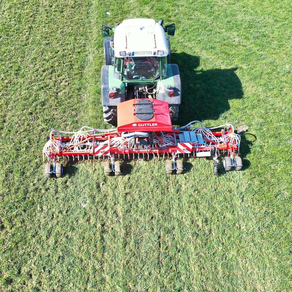A GreenMasterrel egy menetben elvégezhető a felülvetés is, pontos vetőmag-kijuttatással és egyenletes keléssel, legyen szó gyepfelújításról, zöldtrágya-növények vetéséről vagy akár lucernatelepítésről. A beépített Güttler henger kialakítja az ideális magágyszerkezetet a gyorsabb kelés érdekében, miközben visszaszorítja a nem kívánatos gyepalkotó fajokat is. Kukoricatarlón a szárak törésével segíti a kártevők elleni vegyszermentes védekezést, a zöldtrágya vetésével pedig javítja a talajállapotot, csökkenti a műtrágyaigényt és hozzájárul a fenntartható gazdálkodáshoz — valódi értéket teremtve minden hektáron.