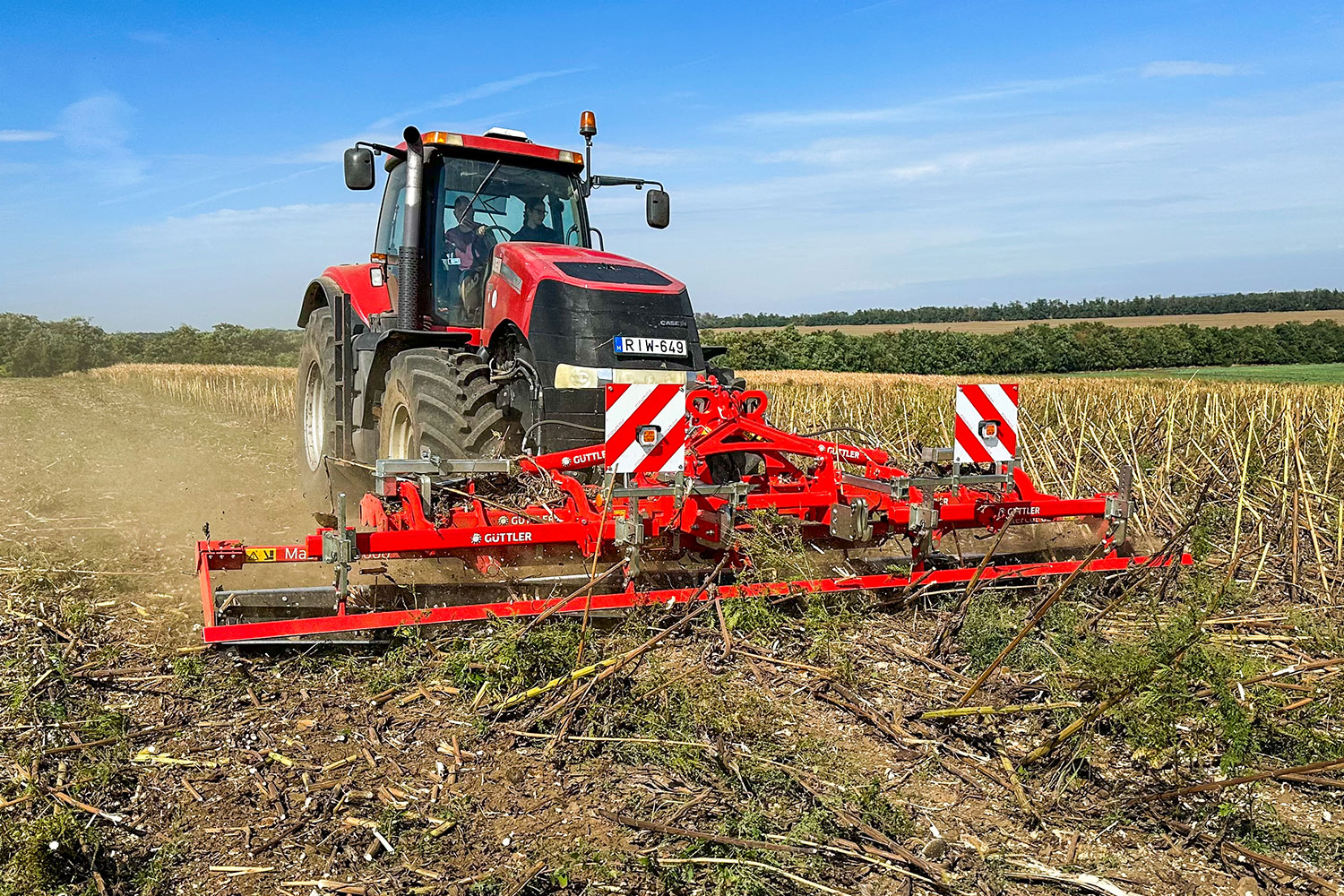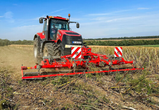 A Güttler MasterCut vágóhenger a gyors, költséghatékony száraprítás új szintjét kínálja: spirális késelrendezése hatékonyan vágja, roppantja és aprítja még a földön fekvő szármaradványokat is, így felgyorsítja a lebomlást és a tápanyagok visszajutását a talajba. Nagy munkasebességgel — akár 10,2 ha/óra területteljesítménnyel — dolgozik, így a tarlókezelés akár háromszor gyorsabban elvégezhető a hagyományos szárzúzókhoz képest.