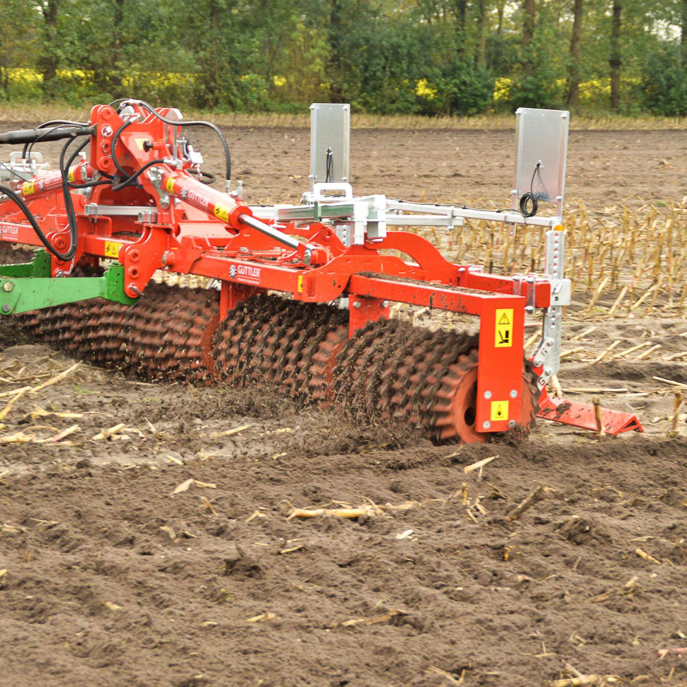 - Még a szántáselmunkáláskor felszínre kerülő nedvesebb talaj sem okoz eltömődést a Güttler-hengerben az egyedülálló öntisztuló tulajdonsága miatt.
